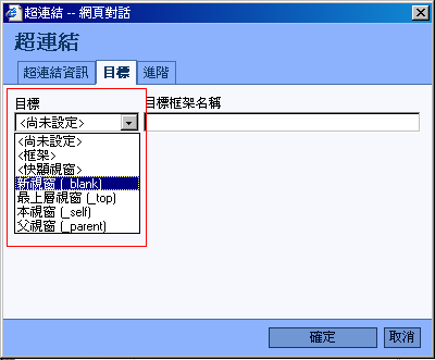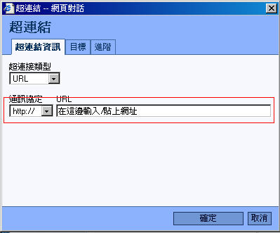 在進階編輯器的超連結鍵按滑鼠左鍵